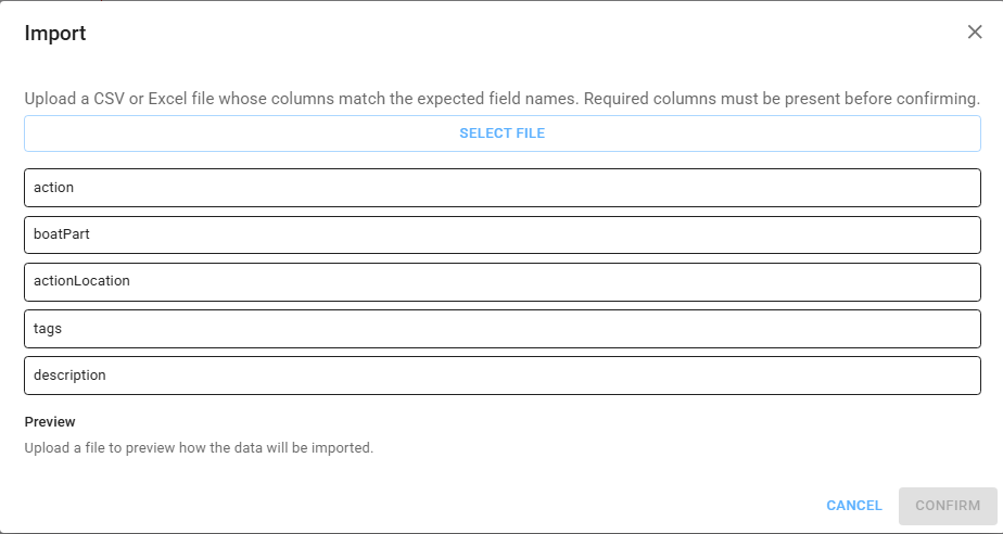Alternatively, you can import a joblist via CSV or Excel using the "Import" button. A popup will appear where you can upload the file; ensure the file contains the required columns as indicated in the template.