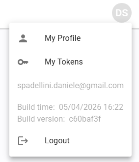 This menu also displays your account email, the current application version, and the Logout action.
