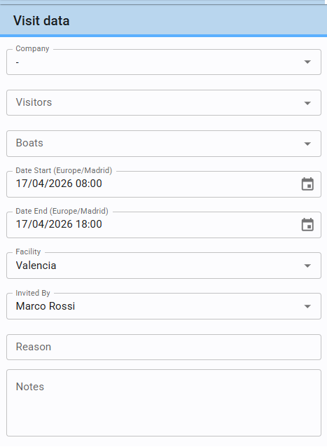 Company and/or Visitors (Who): A visit must include at least one registered visitor or one company.