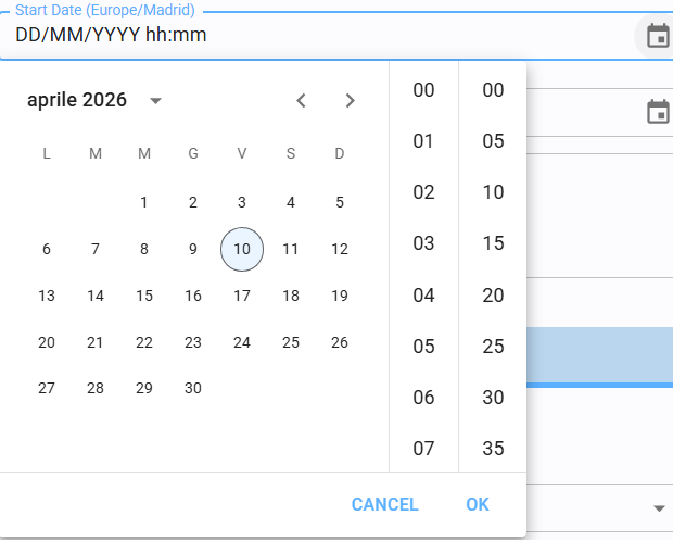 Entering the date and time manually via the keyboard.