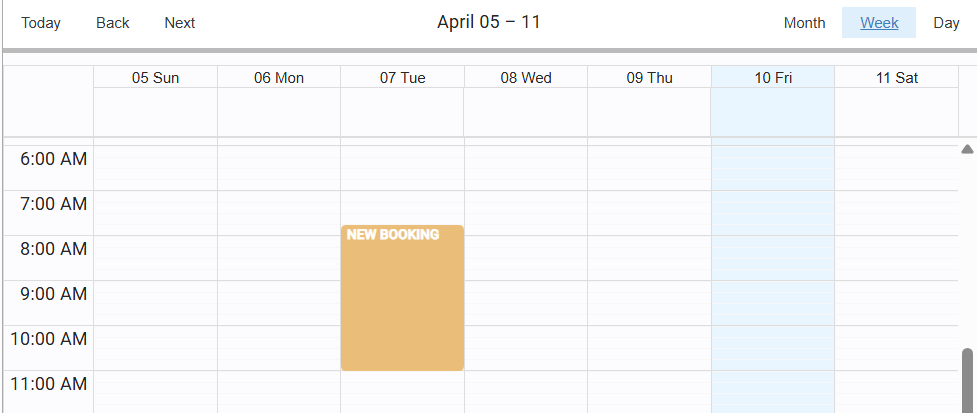 The calendar supports three views for better scheduling precision: Month, Week, Day.