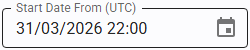 Dates can be entered manually via keyboard or selected using the calendar pop-up.