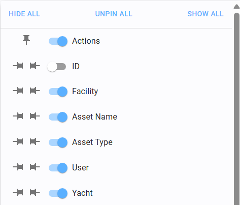 Toggle the switch next to a column name to show or hide it: